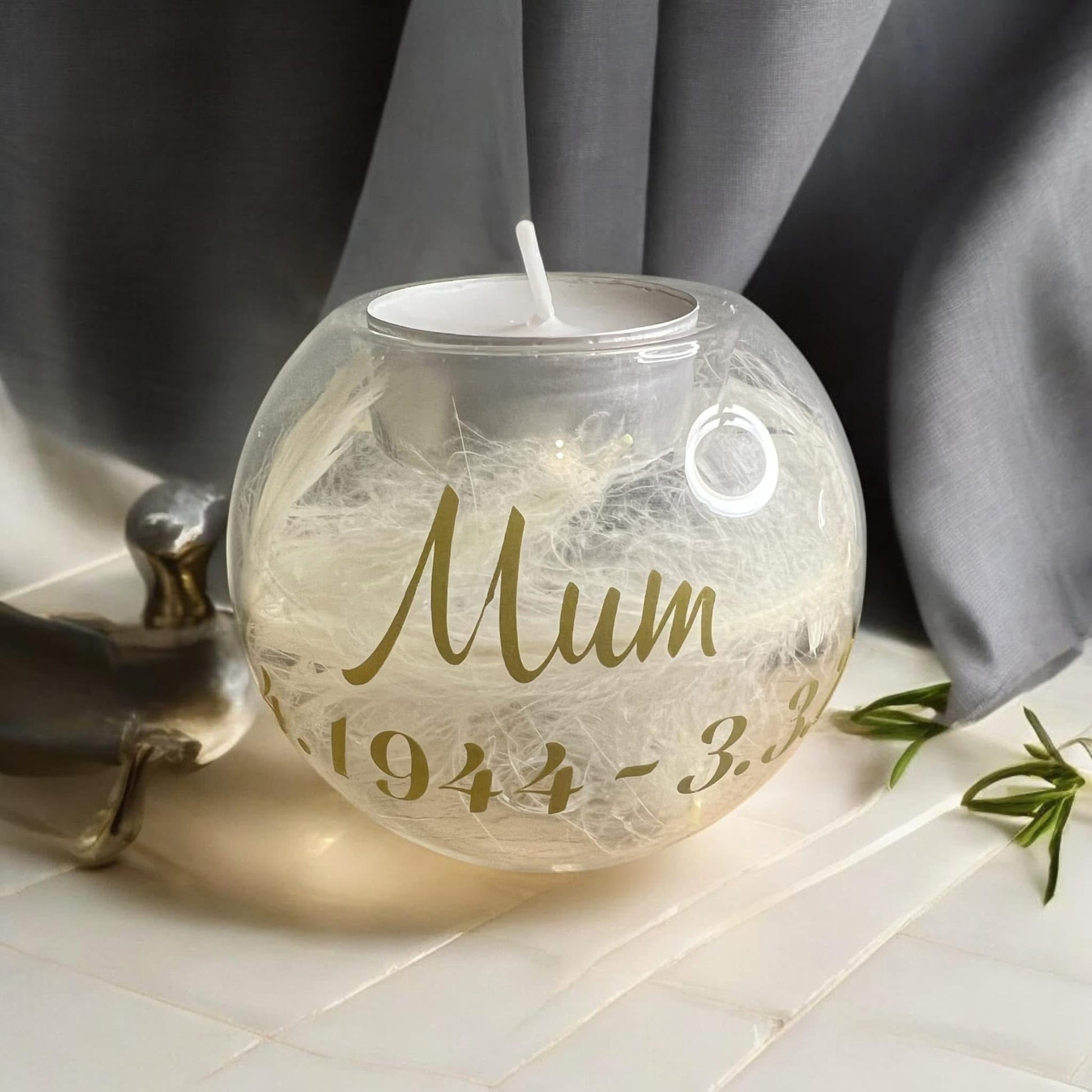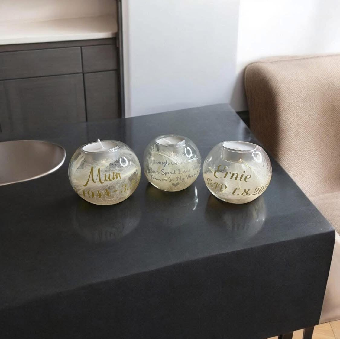 Each holder can be customised with a name, special date, or short message, making it a truly unique keepsake. Simply pop in your favourite tea light candle and let the soft flickering light shine through your chosen design.